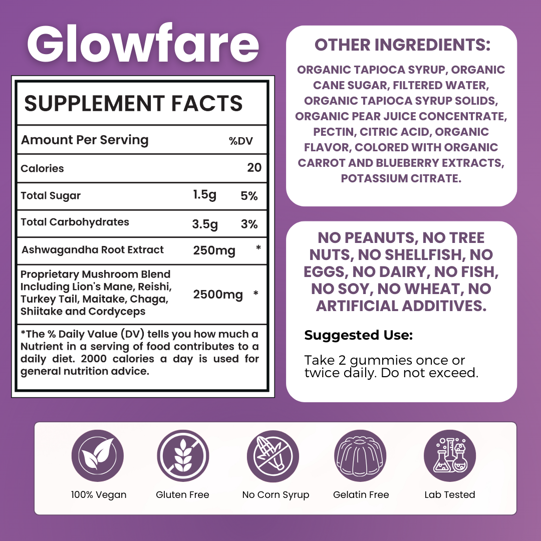Glowfare pairs lion’s mane & cordyceps with adaptogens to support calm energy throughout the day — so you can focus longer, stress less, and perform better. No jitters. No crash. No BS.